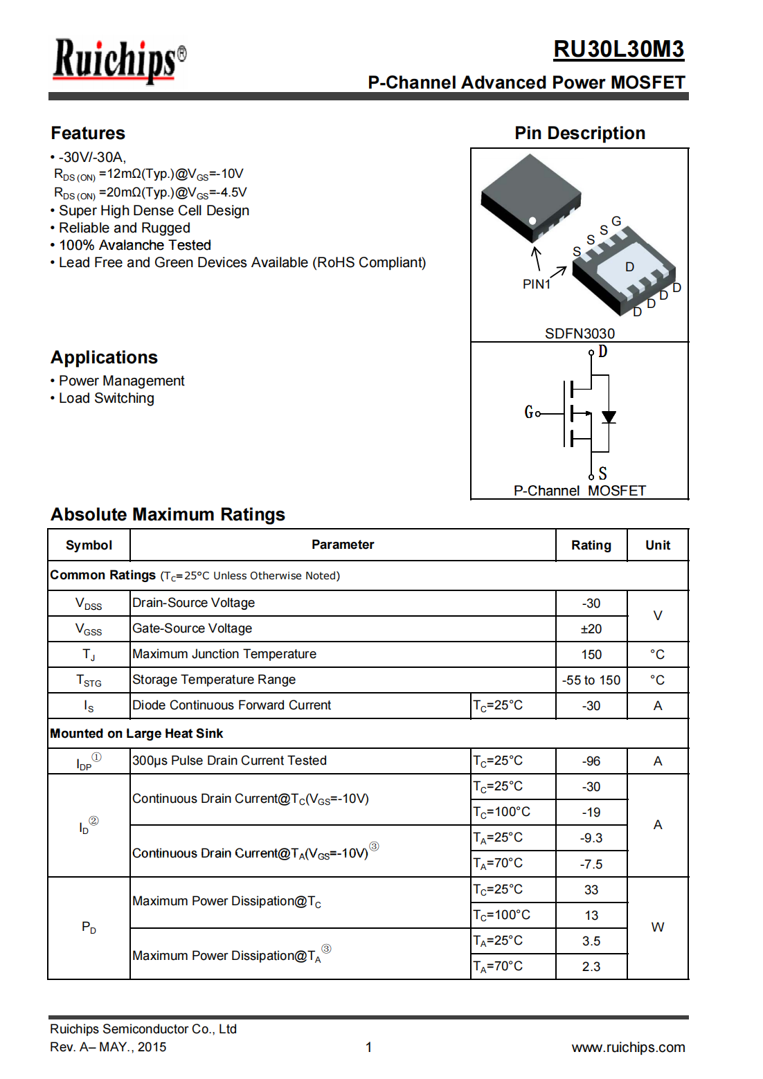 RU30L30M3_Trench MOSFET 銳駿代理商