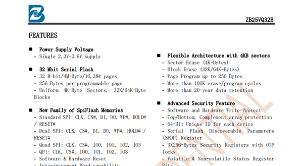 3V 32M-BIT SERIAL NOR FLASH WITH DUAL AND QUAD SPI&QPI