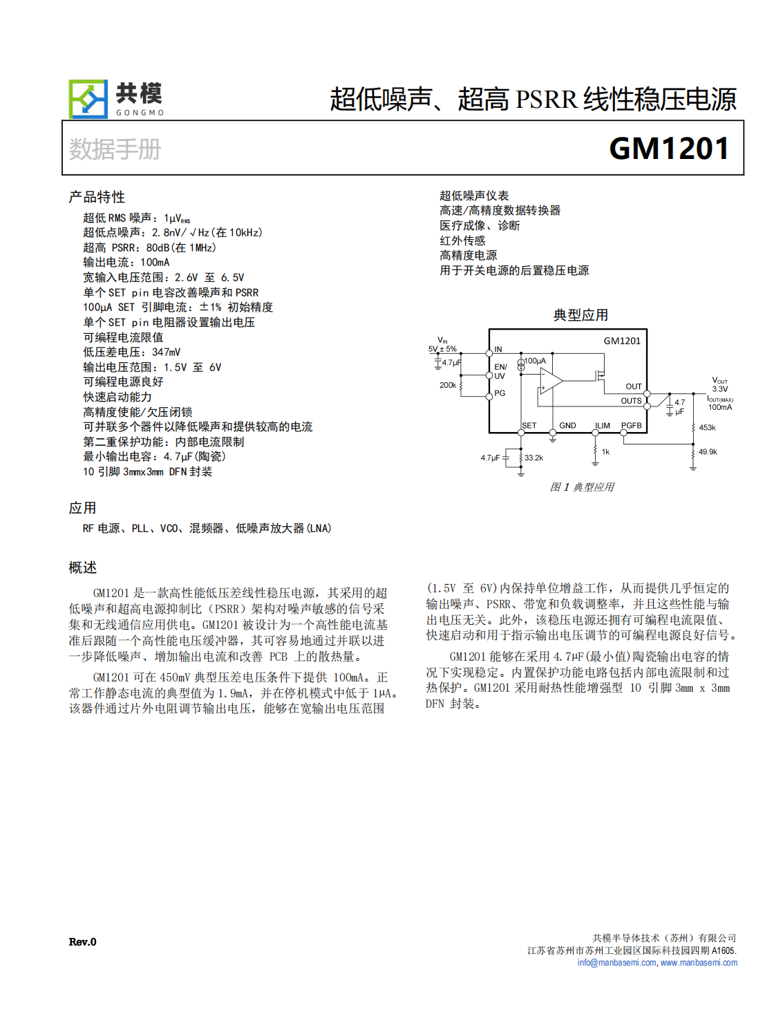 GM1201是一款高性能低壓差線性穩(wěn)壓電源,其采用的超低噪聲和超高電源抑制比(PSRR)架構(gòu)對噪聲敏感的信號采集和無線通信應(yīng)用供電。GM1201被設(shè)計為一個高性能電流基準(zhǔn)后跟隨一個高性能電壓緩沖器,其可容易地通過并聯(lián)以進一步降低噪聲、增加輸出電流和改善PCB上的散熱量。