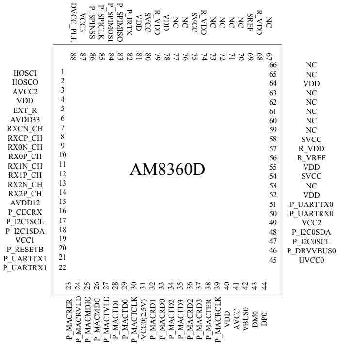 - 采用QFN 88pin(epad),尺寸為10x10mm。