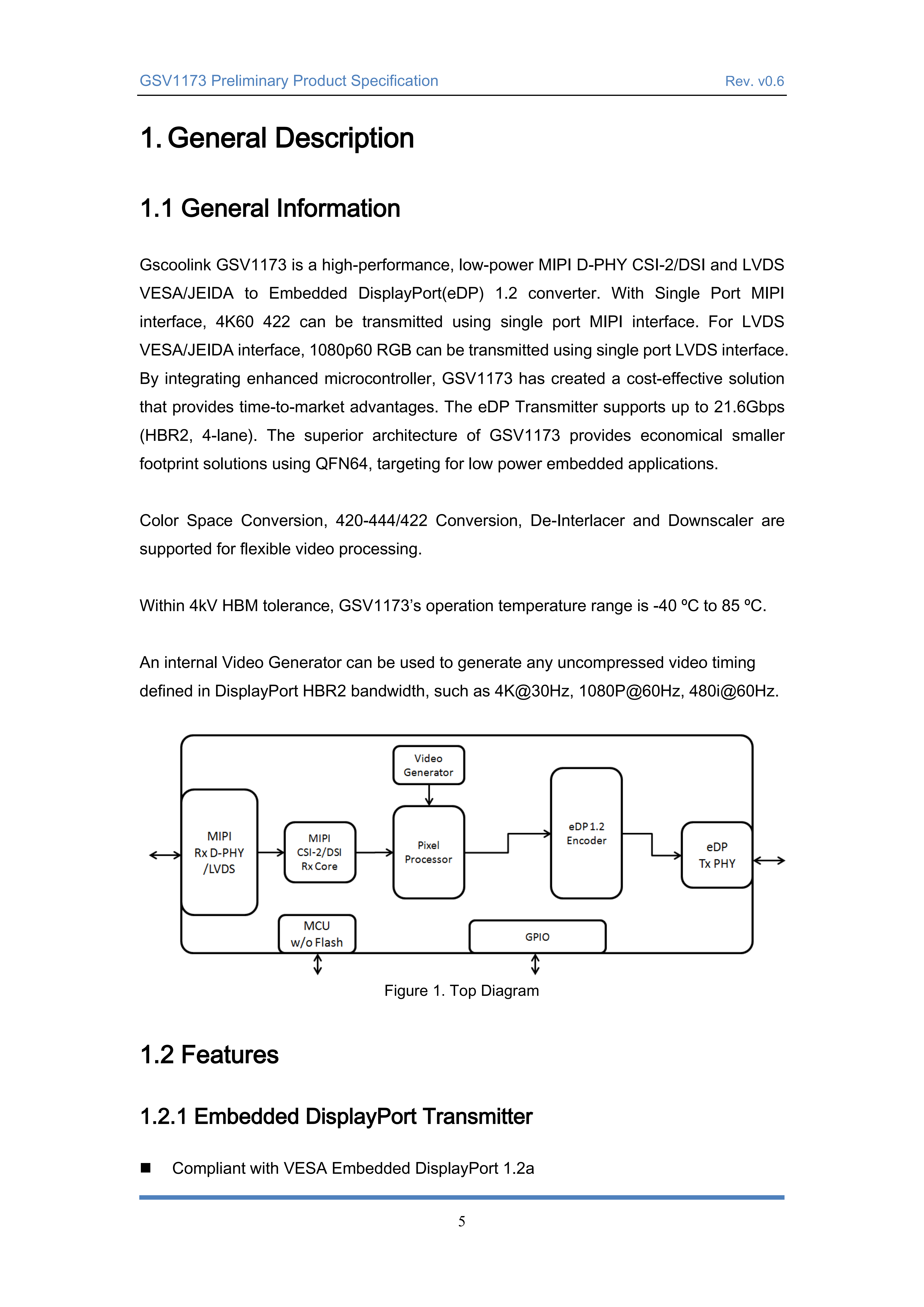 內(nèi)部視頻生成器可用于生成在DisplayPort HBR2帶寬中定義的任何未壓縮視頻時(shí)序,如4K 30Hz、1080P 60Hz、480i 60Hz。